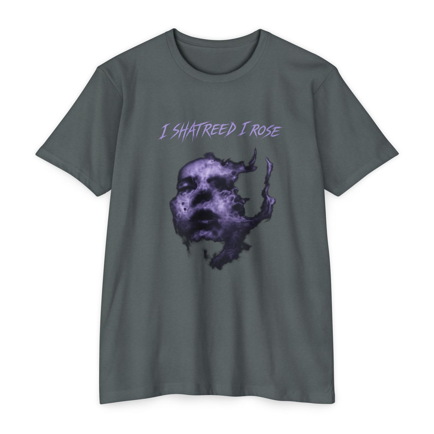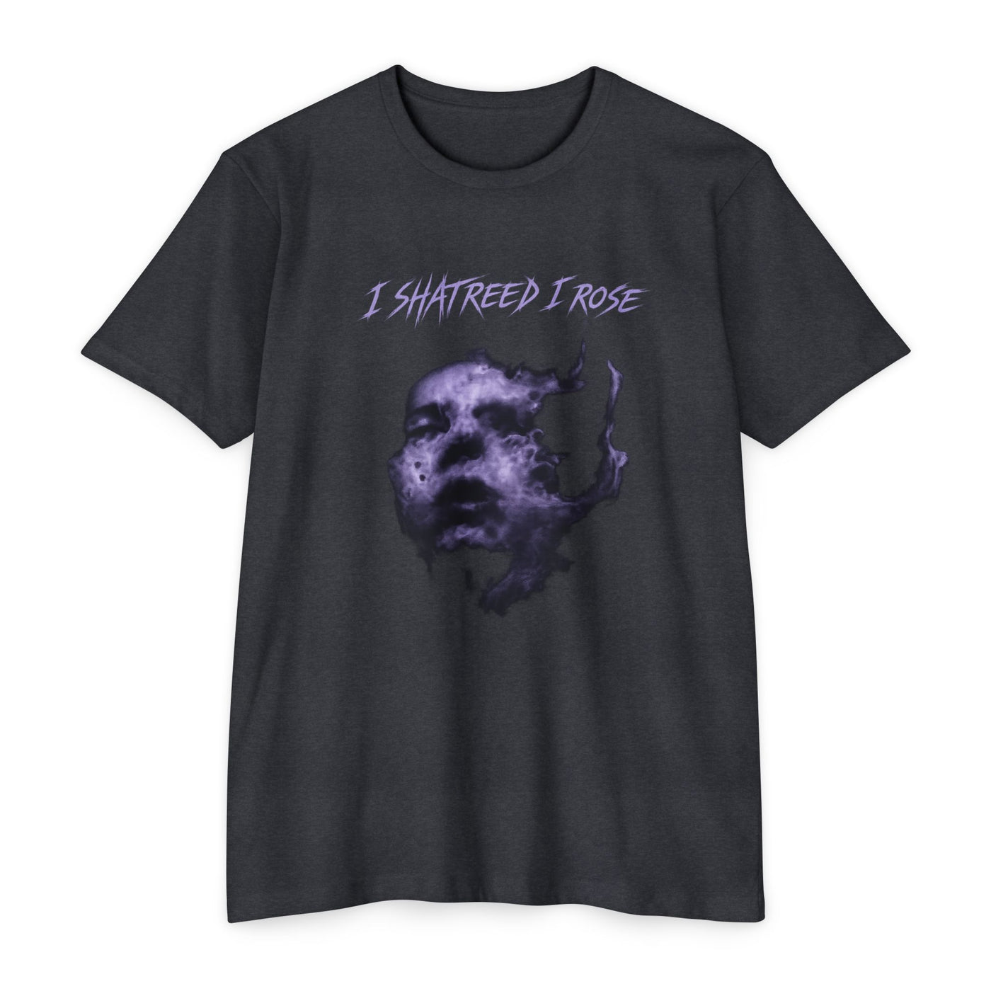 A charcoal-gray classic tee with a moody, surreal print—an ethereal purple face dissolving into shadow with the phrase “I Shattered I Rose” above it. Lightweight and soft, this shirt feels like a quiet, wearable manifesto for anyone who leans into transformation and darkly poetic aesthetics. It sits comfortably in streetwear and art-collector closets alike, pairing cleanly with layered jackets, worn denim, or a statement coat for late-night shows. The understated color lets the purple artwork take center stage, while the classic cut keeps the look effortless and lived-in.